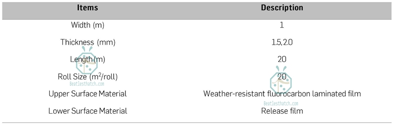 ผลิตภัณฑ์นี้เป็นแผ่นเมมเบรนกันน้ำแบบมีกาวในตัวชนิดบิทูเมนที่มีความทนทานต่อสภาพอากาศสูง ซึ่งมีความสำคัญสำหรับ หลังคามุงจากในเขตร้อน การติดตั้ง ผลิตภัณฑ์นี้ประกอบด้วยกาวแอสฟัลต์ยางที่มีความยึดเกาะสูง เคลือบด้วยฟิล์มลามิเนตฟลูออโรคาร์บอนที่ทนต่อสภาพอากาศ พื้นผิวแอสฟัลต์ยางมีแผ่นรองกันติด ผลิตภัณฑ์นี้เหมาะอย่างยิ่งสำหรับการใช้งานกันซึมหลังคาเย็นที่ต้องเผชิญกับสภาพอากาศภายนอกเป็นเวลานาน