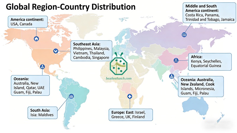 ออสเตรเลีย, นิวซีแลนด์, หมู่เกาะคุก, ไมโครนีเซีย, กวม, ฟิจิ, ปาเลา, วานูอาตู