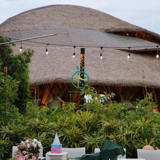 หลังคามุงจากบังกะโลที่ทนทานมีจำหน่ายใน Beatles. หลังคามุงจากเทียมอายุการใช้งานยาวนาน สำหรับ บังกะโล ทำได้ ปรับแต่งตาม ถึง ของคุณ ชายหาดบาหลี กระท่อม บังกะโลรีสอร์ทหรือ บาร์บีคิว ร้านอาหาร การออกแบบ.