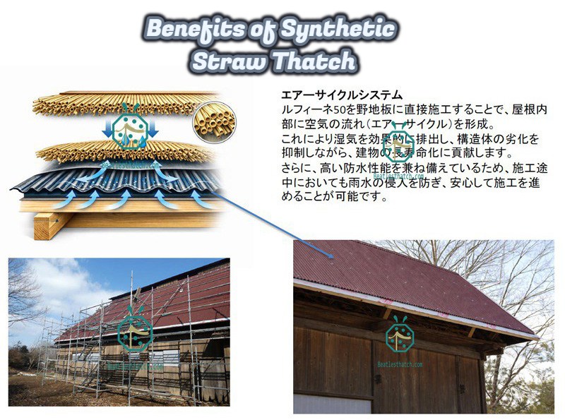 ตัวแทนจำหน่ายที่ได้รับอนุญาตของเราในญี่ปุ่นได้ดำเนินการโครงการบูรณะอาคารเก่าแก่ในจังหวัดยามากาตะเสร็จสมบูรณ์แล้ว โดยทำการเปลี่ยนหลังคามุงจากธรรมชาติที่ผุพังและร่วงหล่นบนอาคารแบบดั้งเดิมด้วยหลังคามุงจากคุณภาพสูงของเรา กระเบื้องหลังคาฟางสังเคราะห์ .
